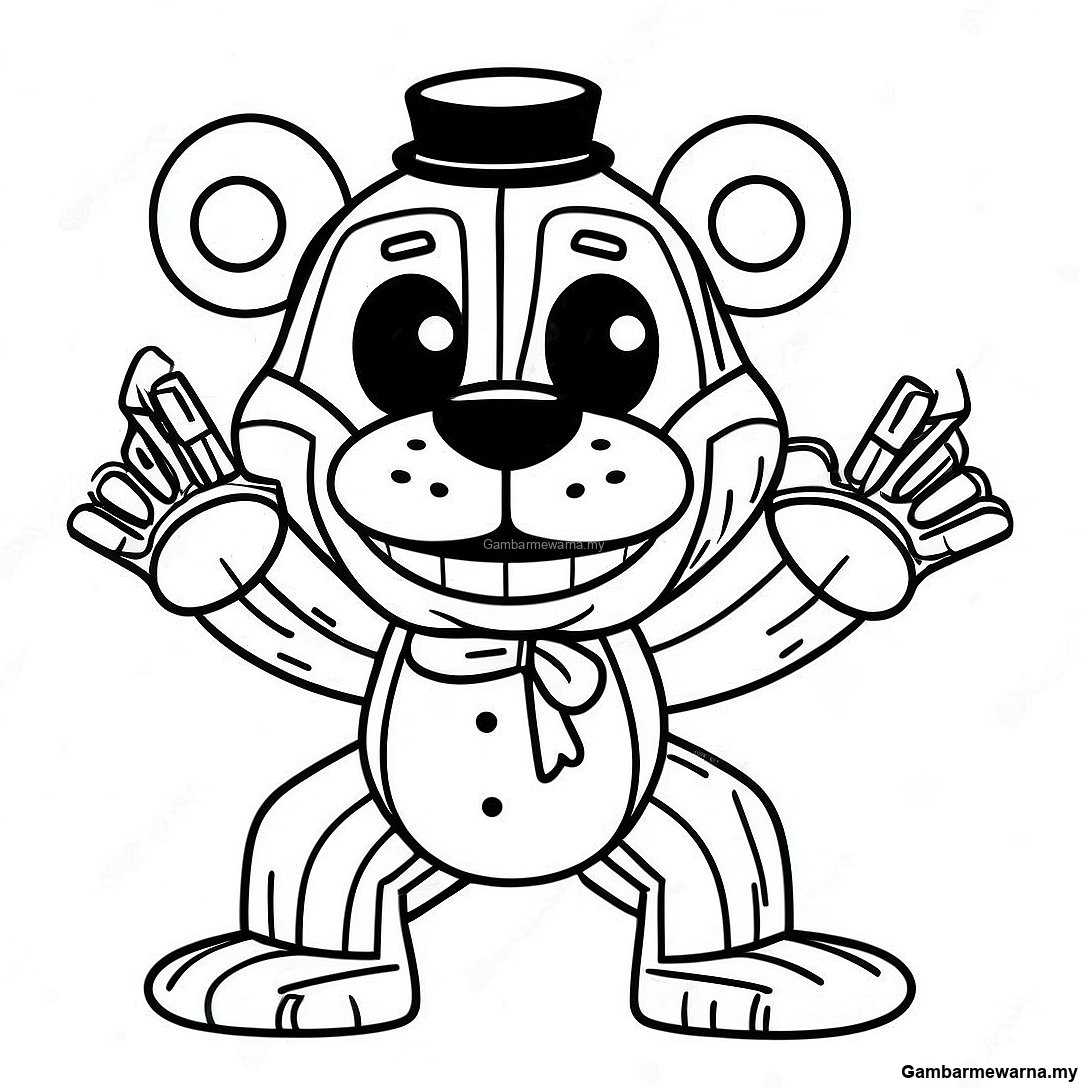 Muat turun PDF Boleh Cetak Halaman Mewarna Boneka Gembira Fnaf