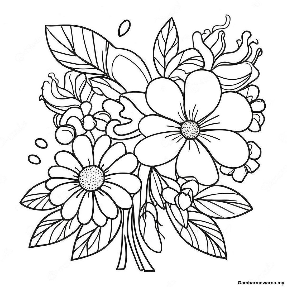 Halaman Mewarna Bouquet Bunga Berwarna Warni