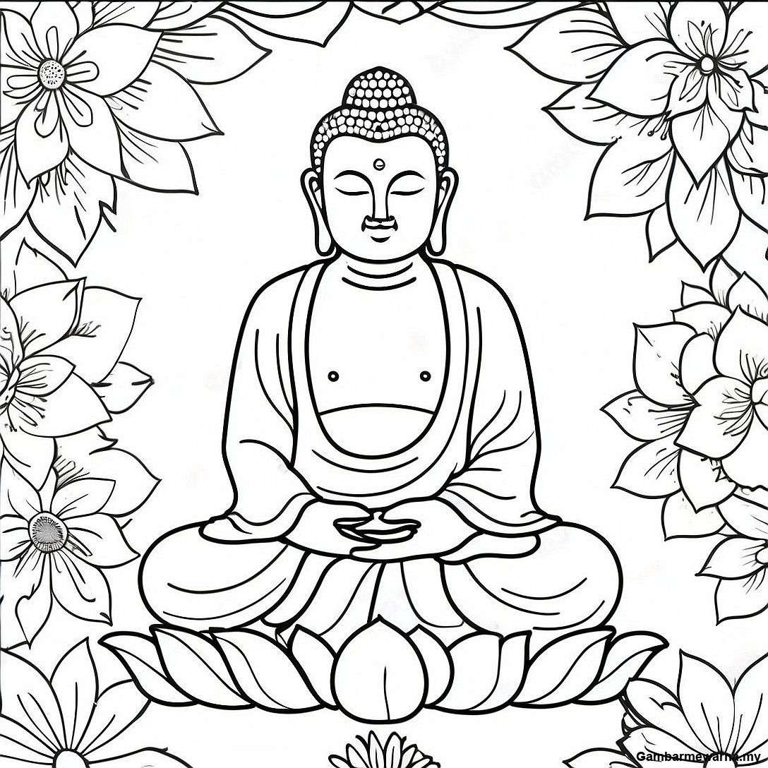 Halaman Mewarna Buddha Dikelilingi Oleh Bunga Lotus