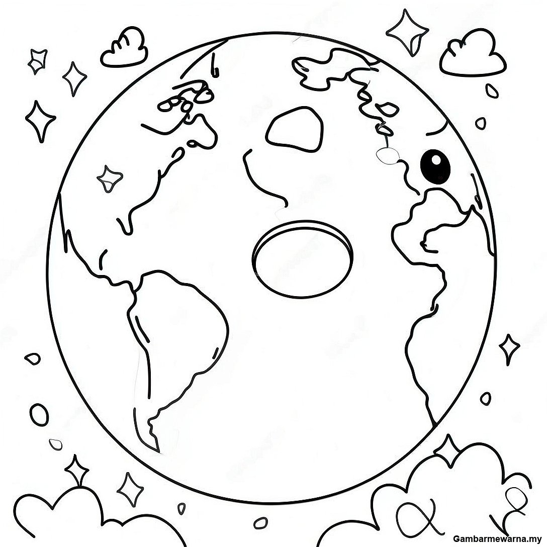 Muat turun PDF Boleh Cetak Halaman Mewarna Bumi Berwarna Dengan Wajah Tersenyum
