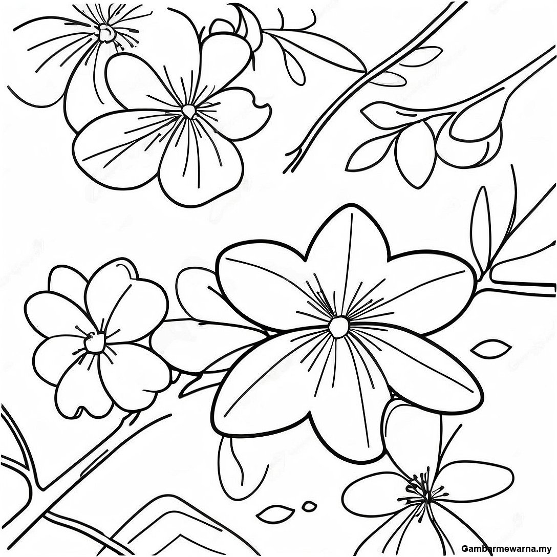 Halaman Mewarna Bunga Sakura Halus