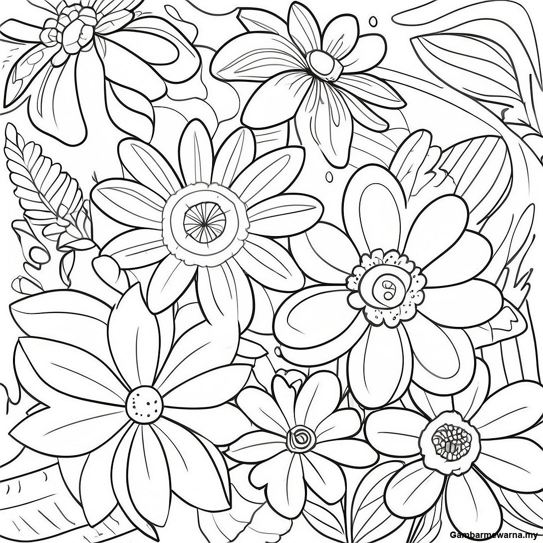 Muat turun PDF Boleh Cetak Halaman Mewarna Bunga Yang Cantik Mekar