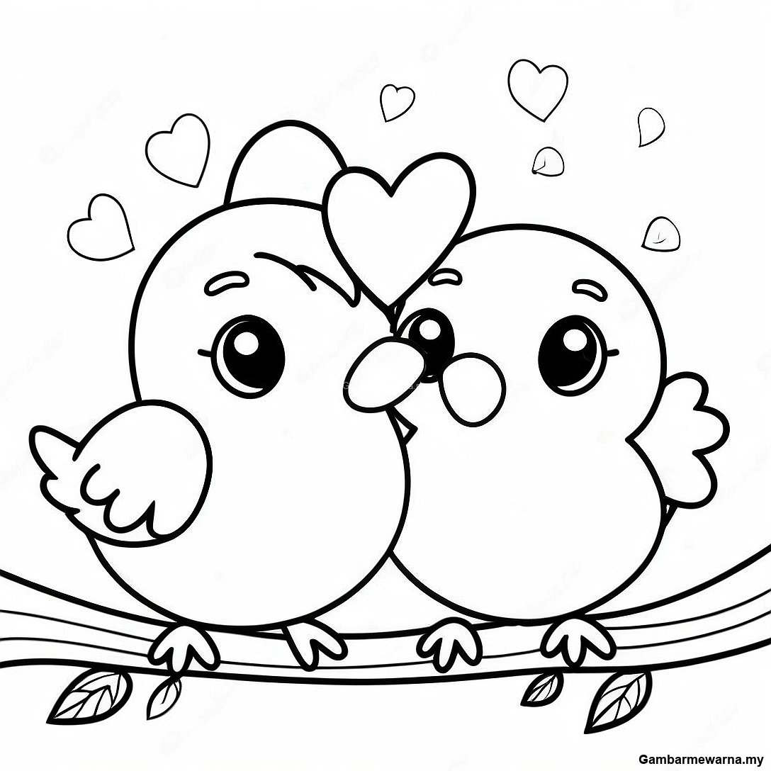 Muat turun PDF Boleh Cetak Halaman Mewarna Burung Cinta Comel Februari