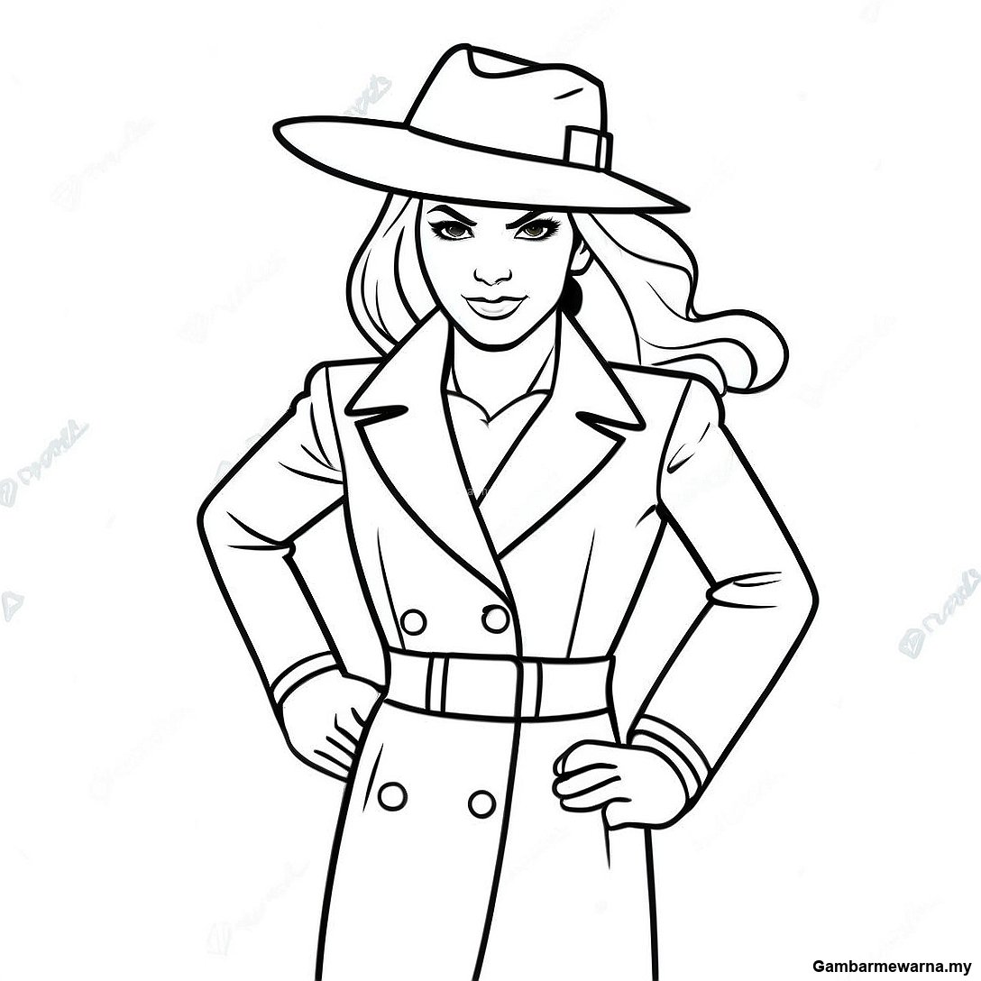Halaman Mewarna Carmen Sandiego Dalam Pakaian Detektif