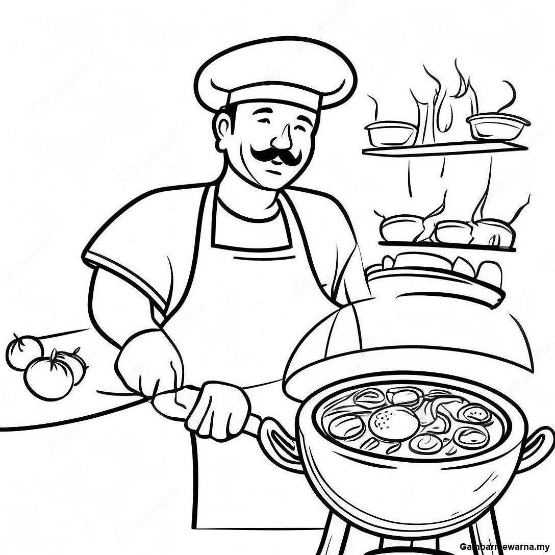 Muat turun PDF Boleh Cetak Halaman Mewarna Chef Bbq Yang Memasak