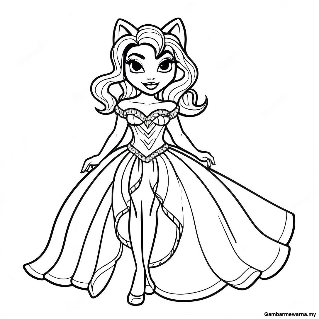 Muat turun PDF Boleh Cetak Halaman Mewarna Clawdeen Wolf Dalam Gaun Hebat