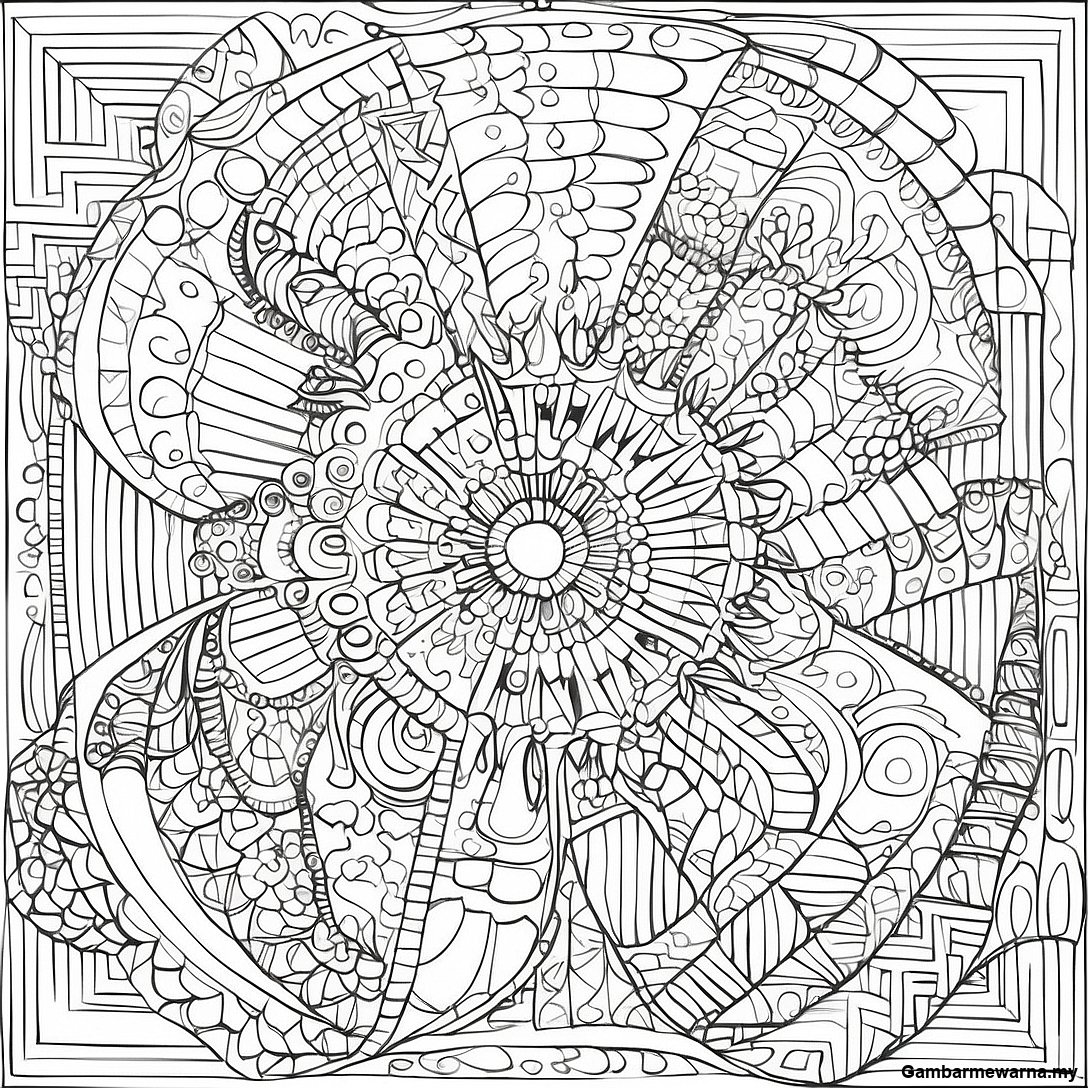 Halaman Mewarna Corak Geometri Ilusi Optik Yang Rumit
