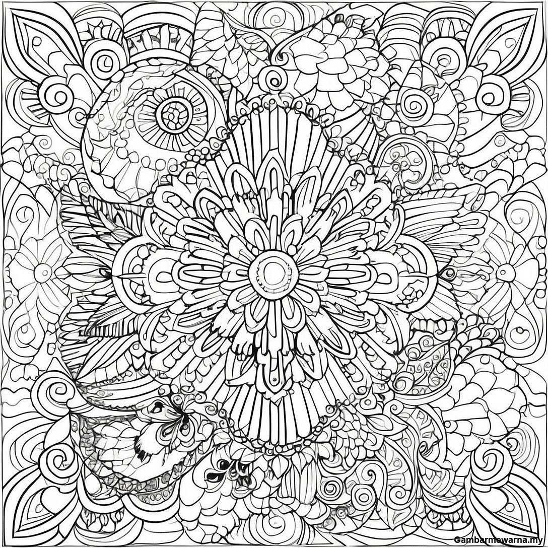 Muat turun PDF Boleh Cetak Halaman Mewarna Corak Kaleidoskop Yang Rumit