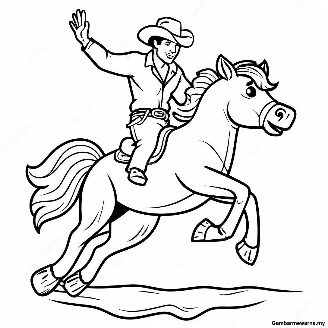 Halaman Mewarna Cowboy Menunggang Bronco