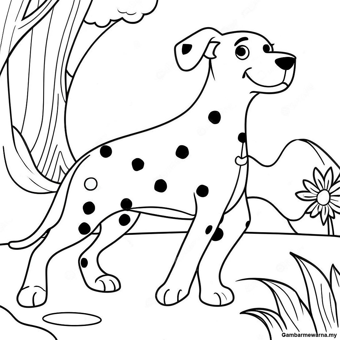 Muat turun PDF Boleh Cetak Halaman Mewarna Dalmatian Bertompok Bermain Ambil