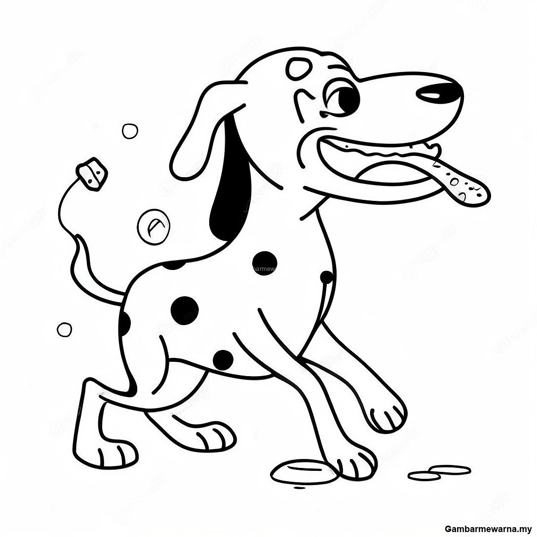 Halaman Mewarna Dalmatian Bertompok Bermain Ambil