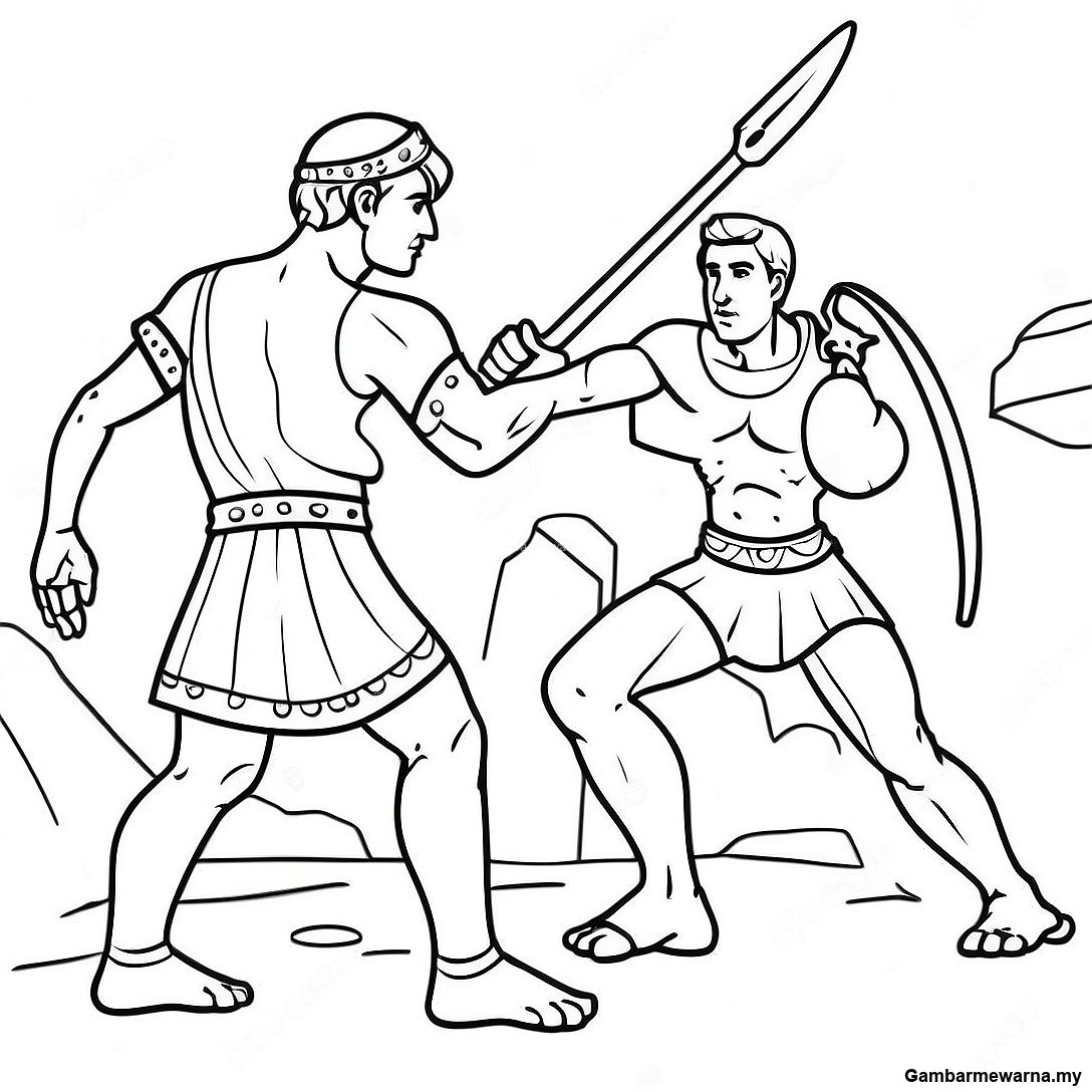 Halaman Mewarna David Yang Berani Menghadapi Goliath