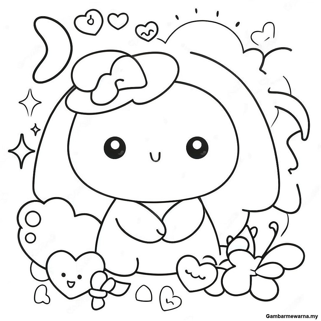 Halaman Mewarna Doodle Kawaii Comel