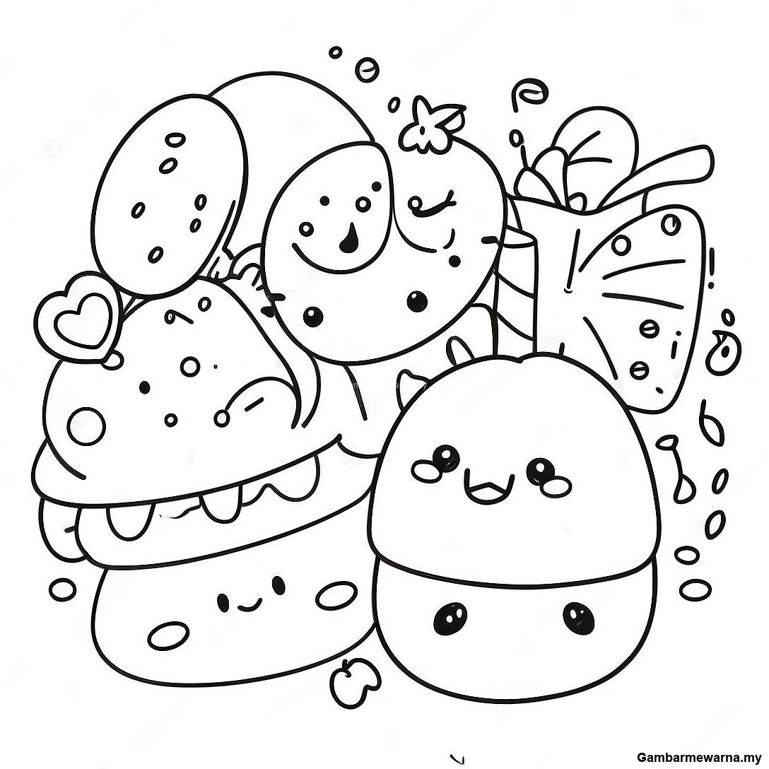 Halaman Mewarna Doodle Makanan Kawaii Yang Menawan 118884 53971