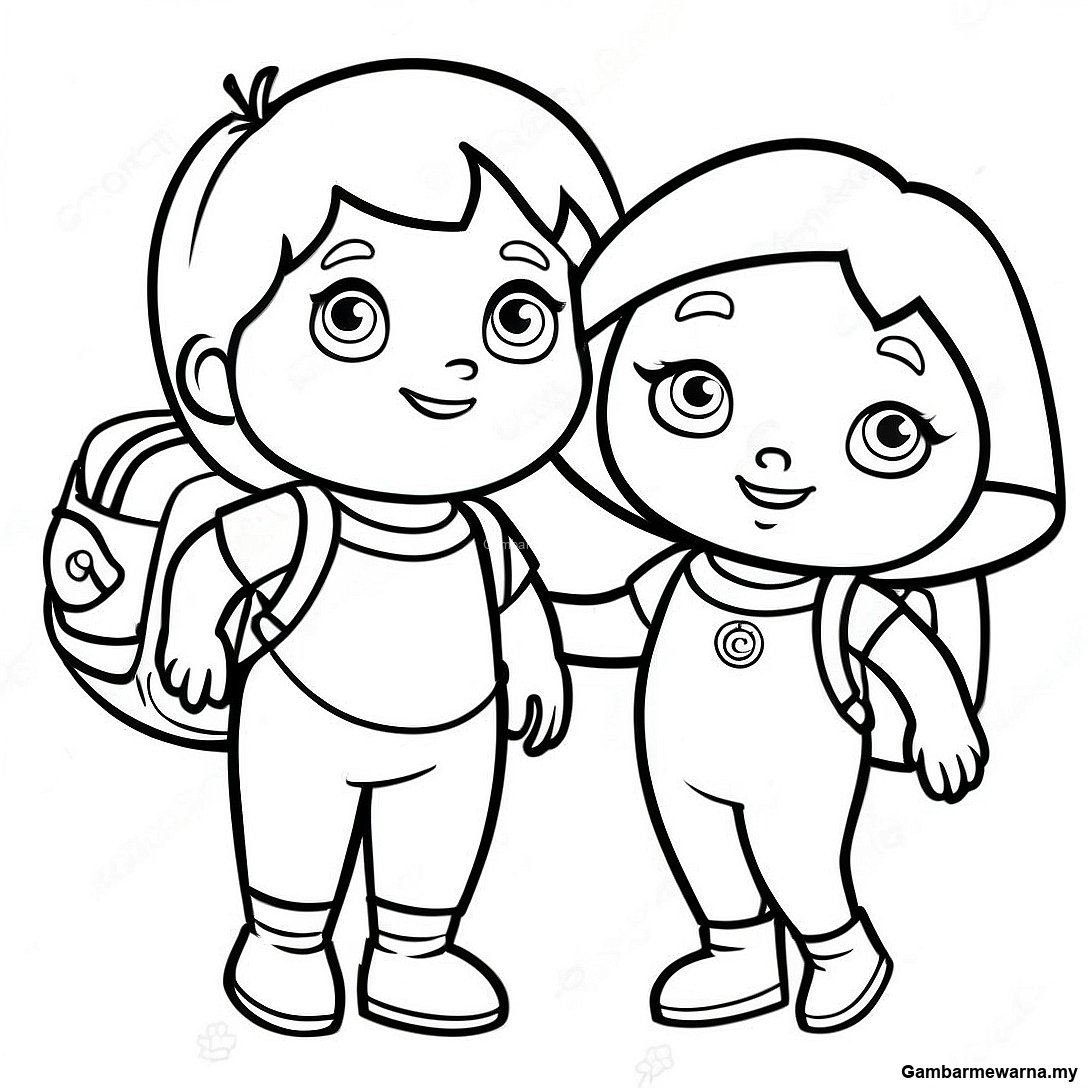 Halaman Mewarna Dora Dan Boots Dengan Beg Galas
