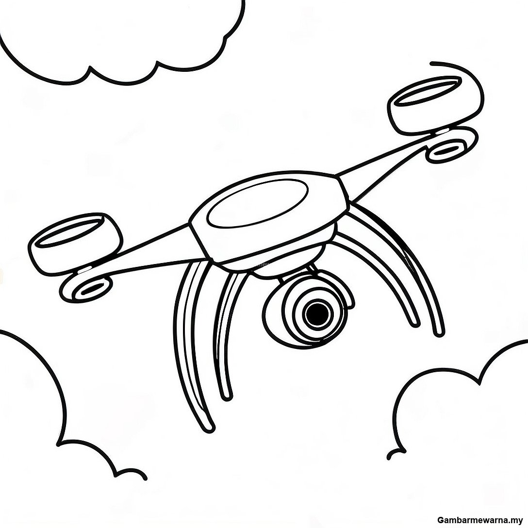Muat turun PDF Boleh Cetak Halaman Mewarna Drone Terbang Di Langit