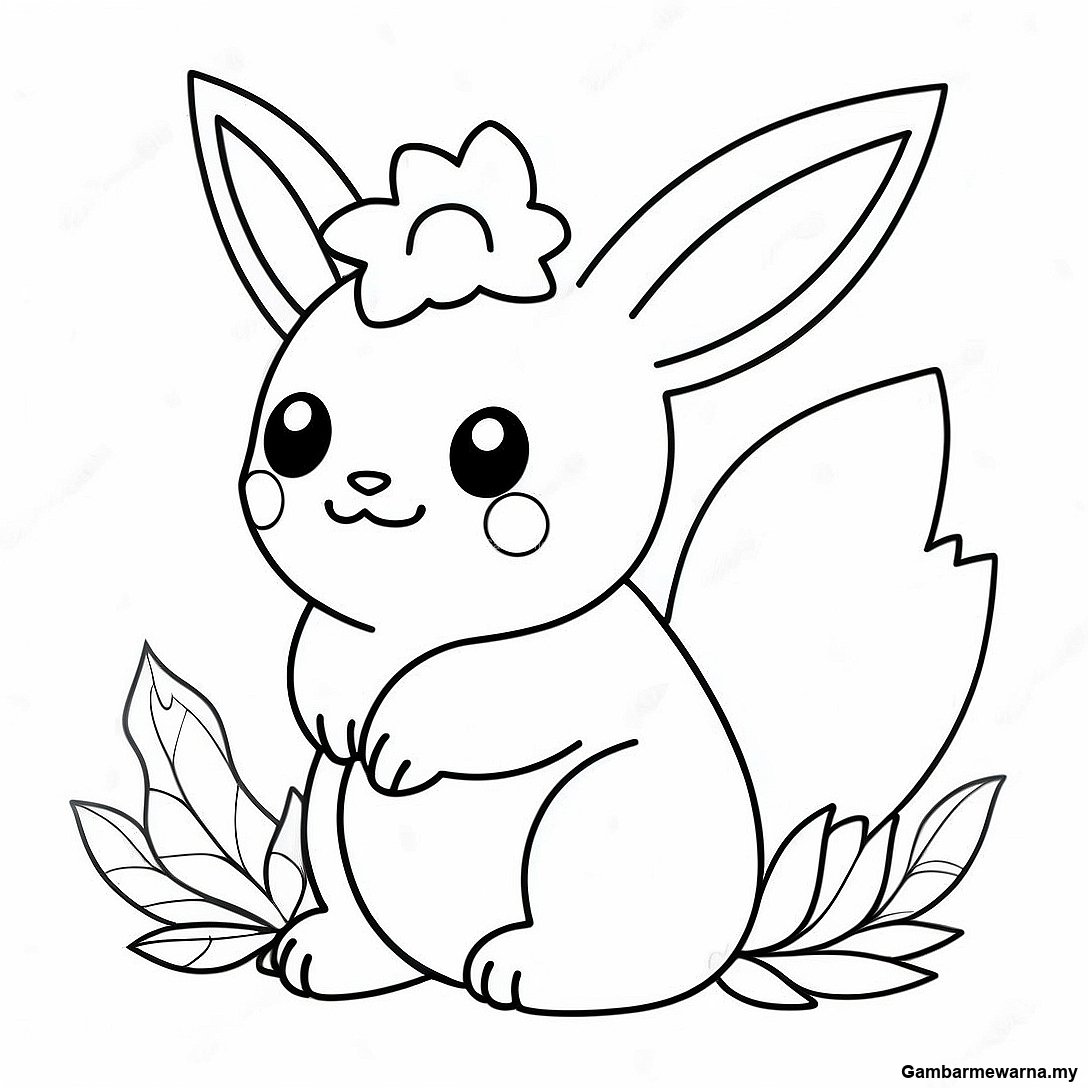Halaman Mewarna Flareon Comel Dengan Bunga 121758 56378