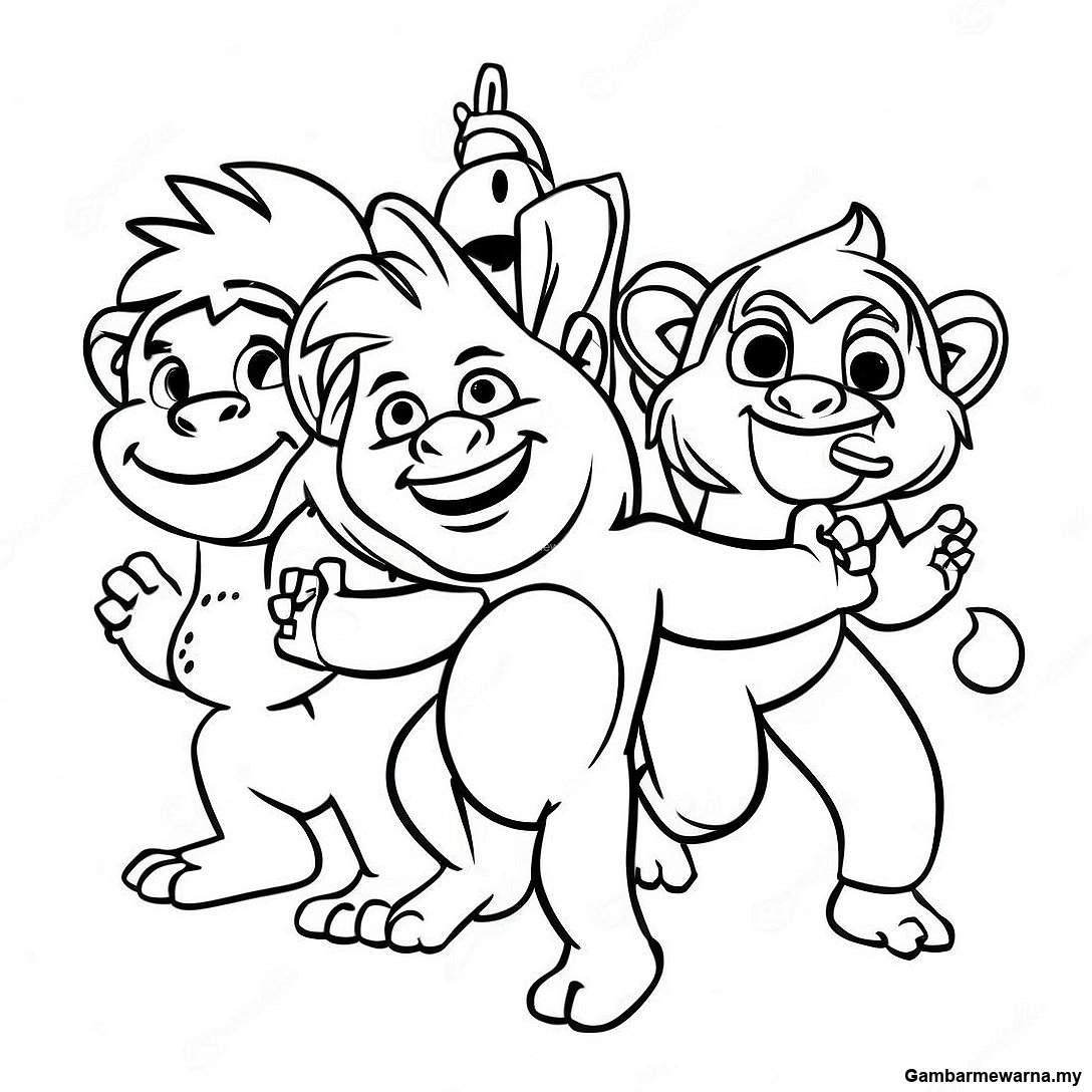 Muat turun PDF Boleh Cetak Halaman Mewarna Floyd Troll Menari Dengan Kawan-Kawan