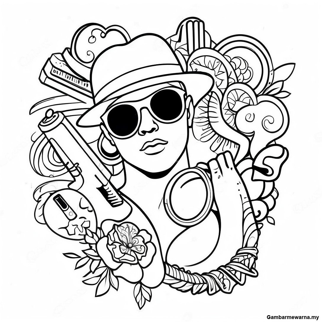 Halaman Mewarna Gaya Tatu Gangsta Vintage