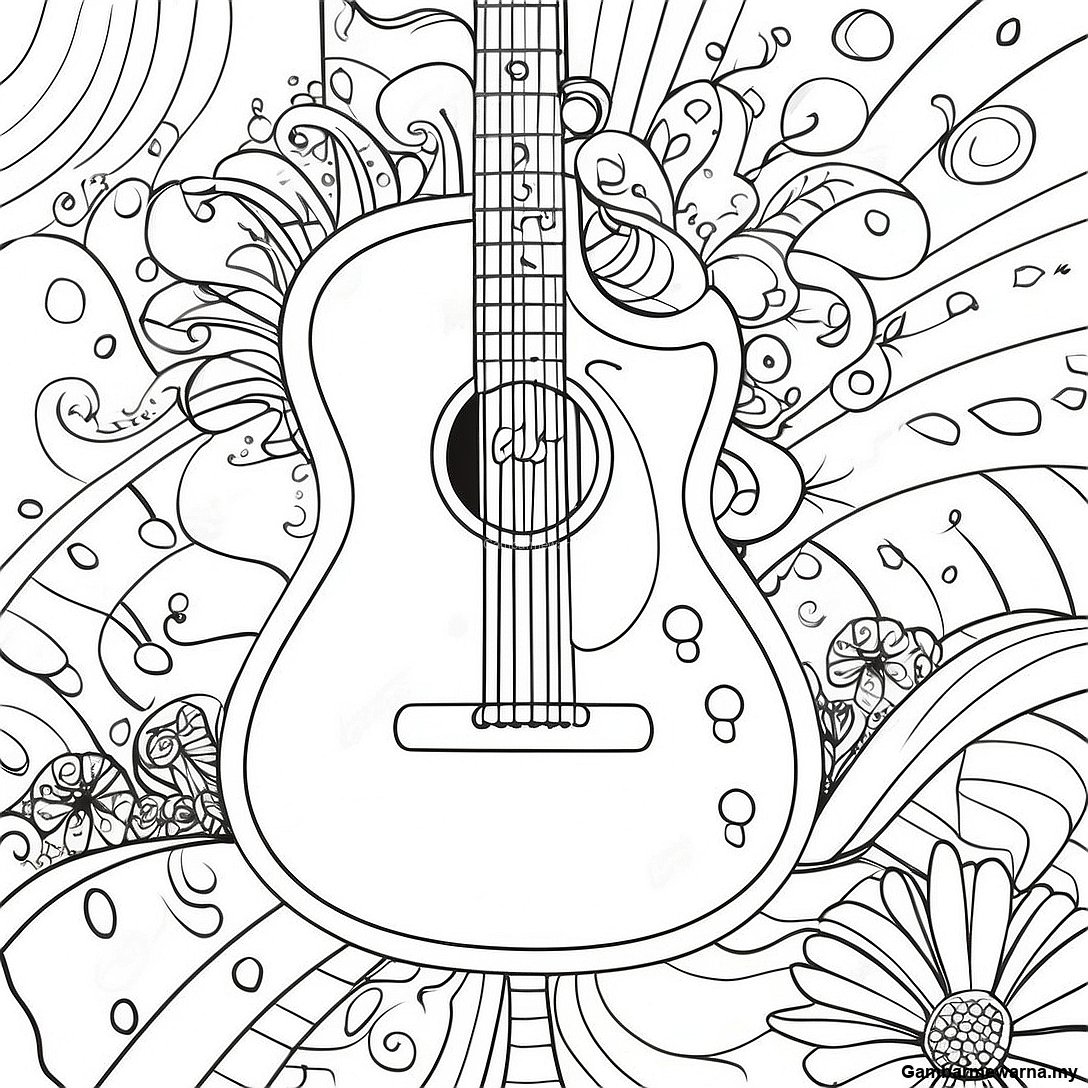 Muat turun PDF Boleh Cetak Halaman Mewarna Gitar Berwarna-Warni