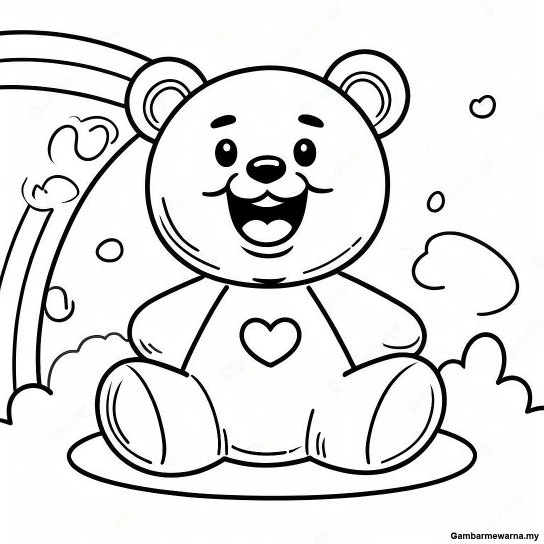 Halaman Mewarna Gummy Bear Gembira Di Pelangi