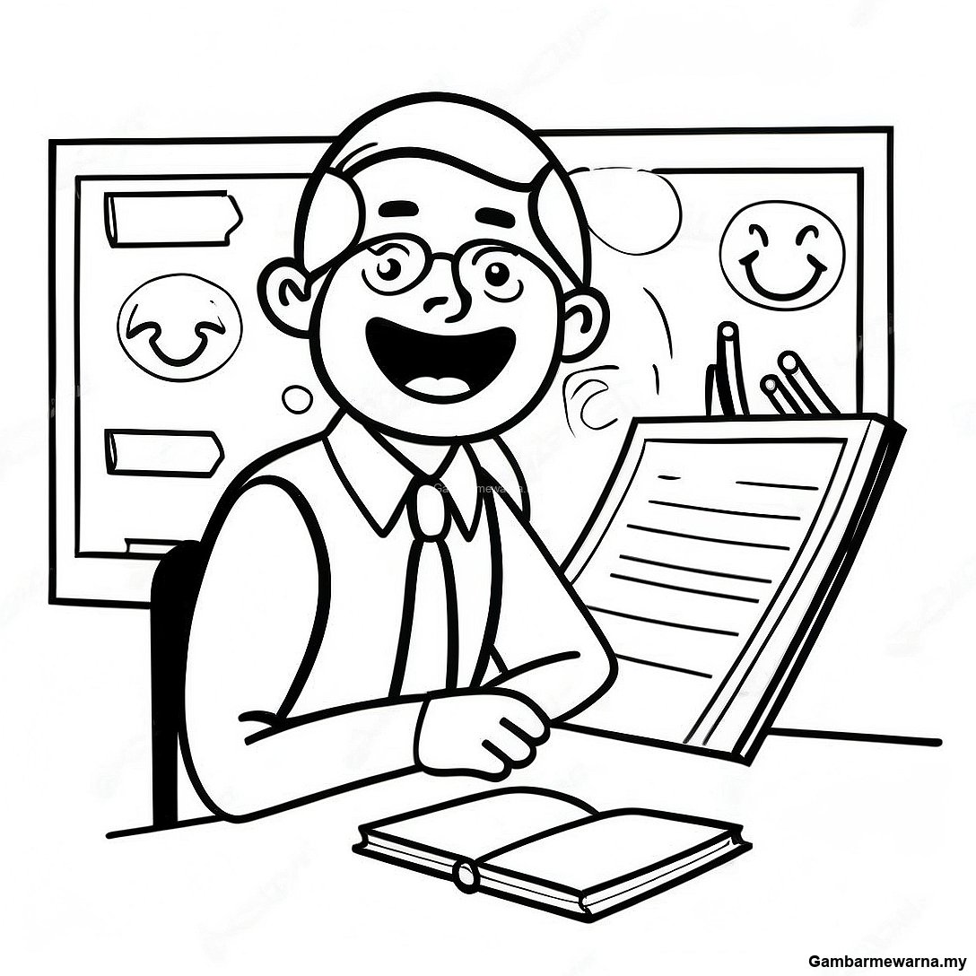 Muat turun PDF Boleh Cetak Halaman Mewarna Guru Gembira Di Meja