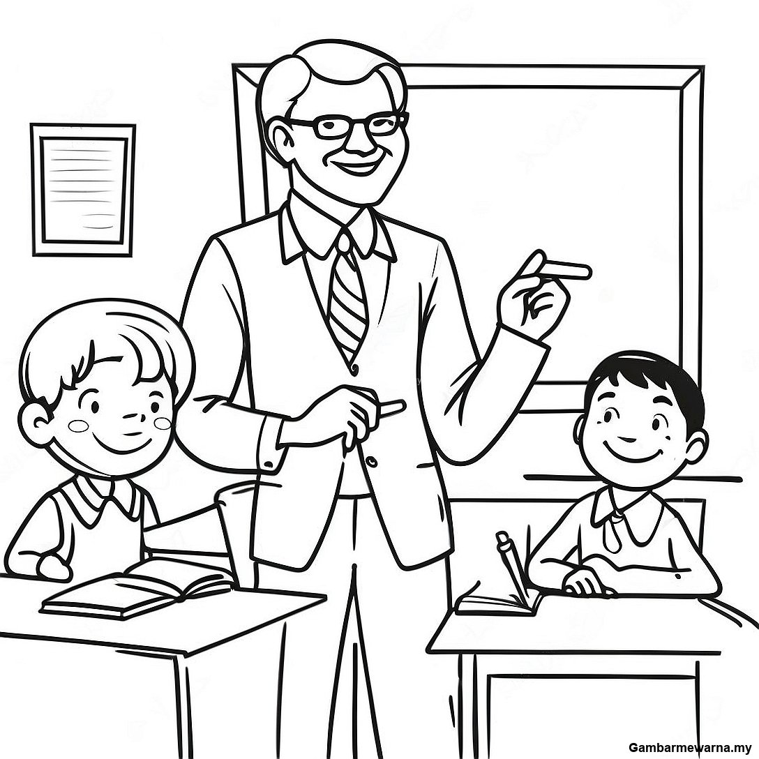 Halaman Mewarna Guru Mesra Bersama Pelajar