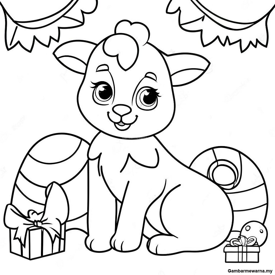 Muat turun PDF Boleh Cetak Halaman Mewarna Haiwan Krismas