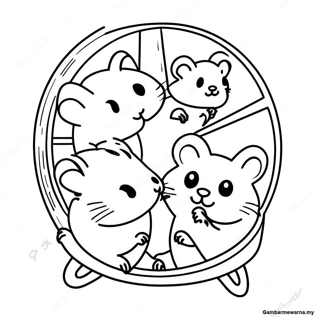Halaman Mewarna Hamster Comel Di Atas Roda