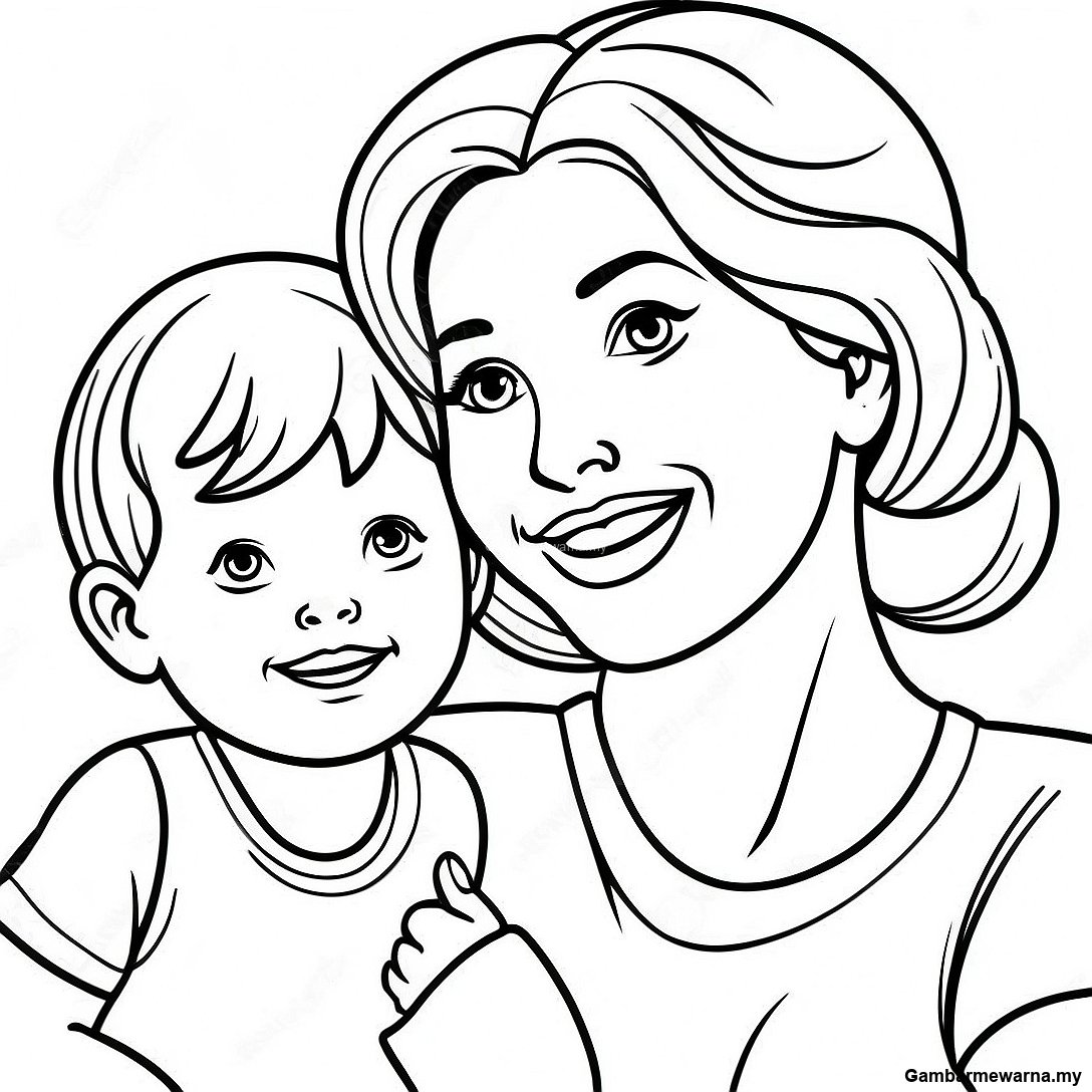Halaman Mewarna Ibu Dan Anak Lelaki Yang Ceria