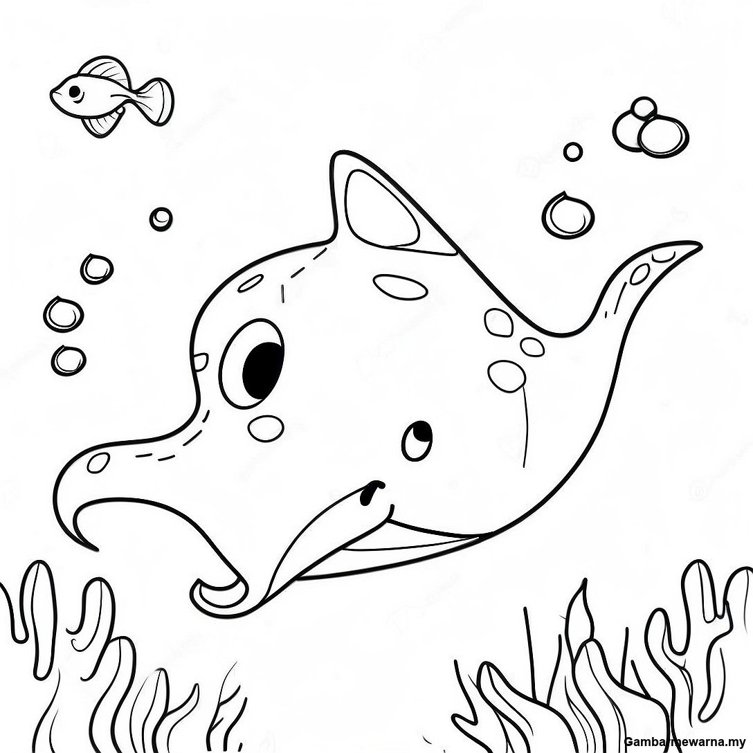 Muat turun PDF Boleh Cetak Halaman Mewarna Ikan Pari Comel Berenang