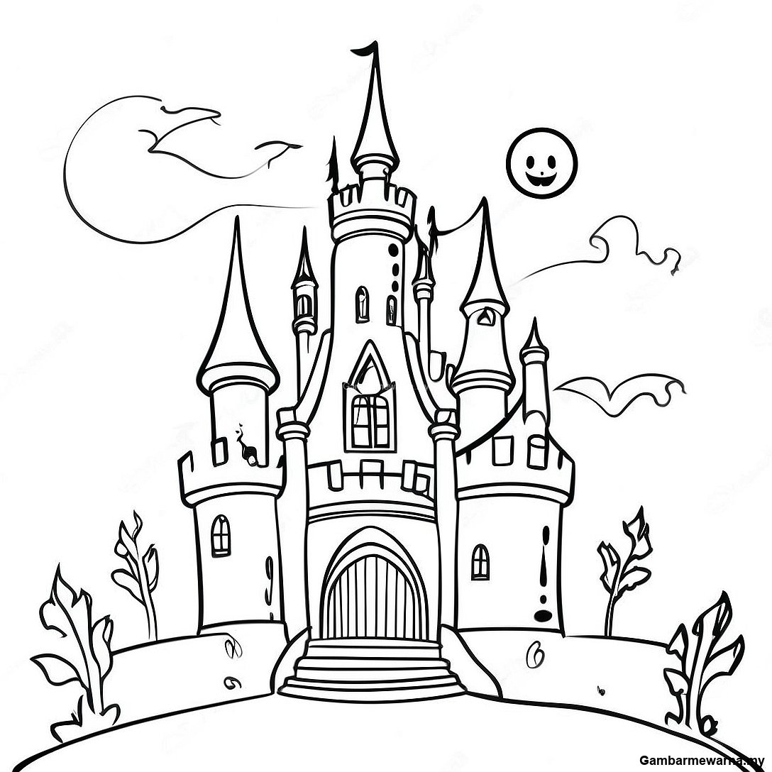 Halaman Mewarna Istana Disney Berhantu Untuk Halloween 85983 26818