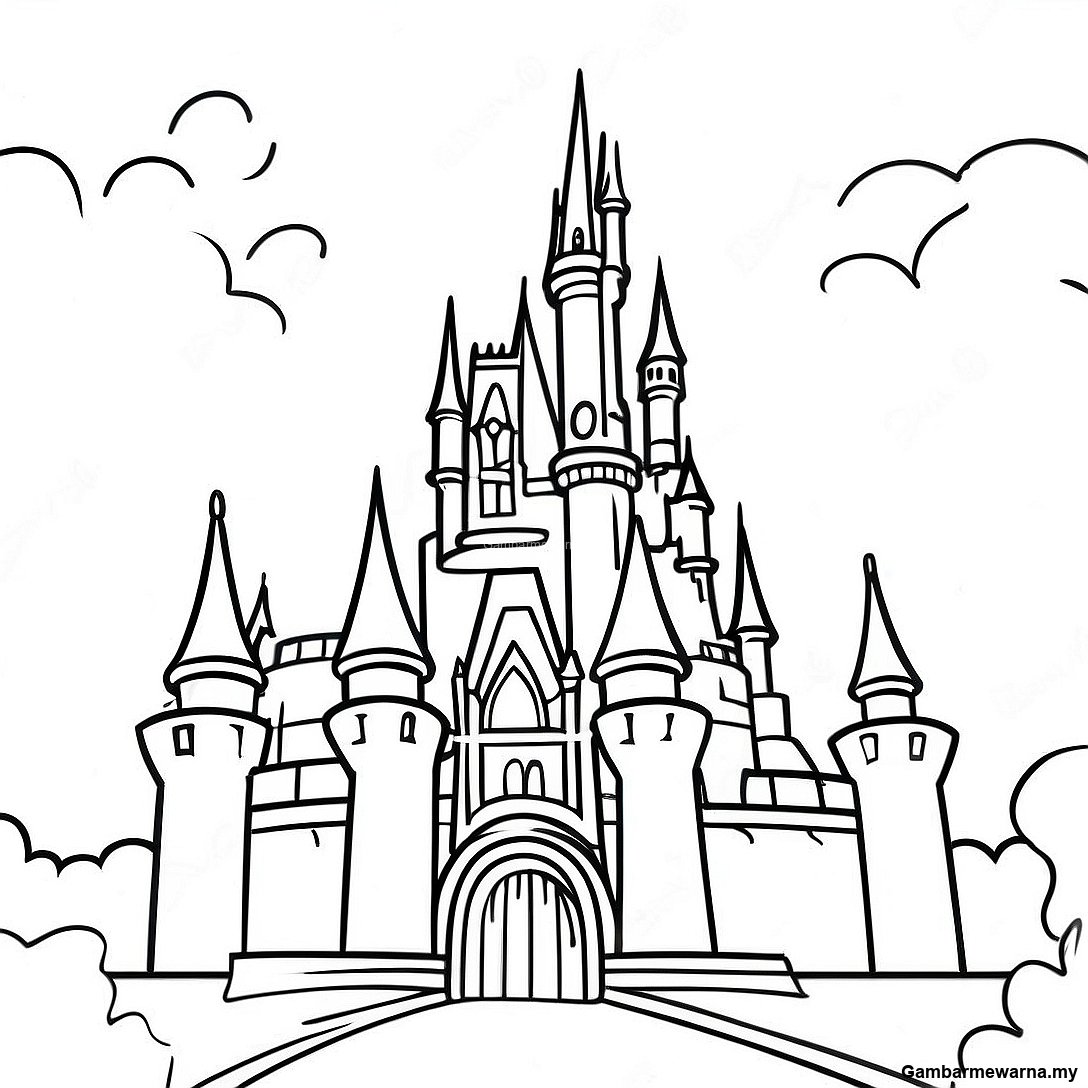 Halaman Mewarna Istana Disney Berwarna-Warni
