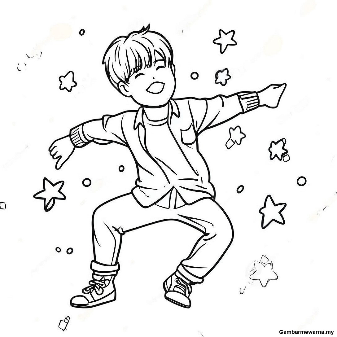 Halaman Mewarna Jimin Menari Dengan Percikan