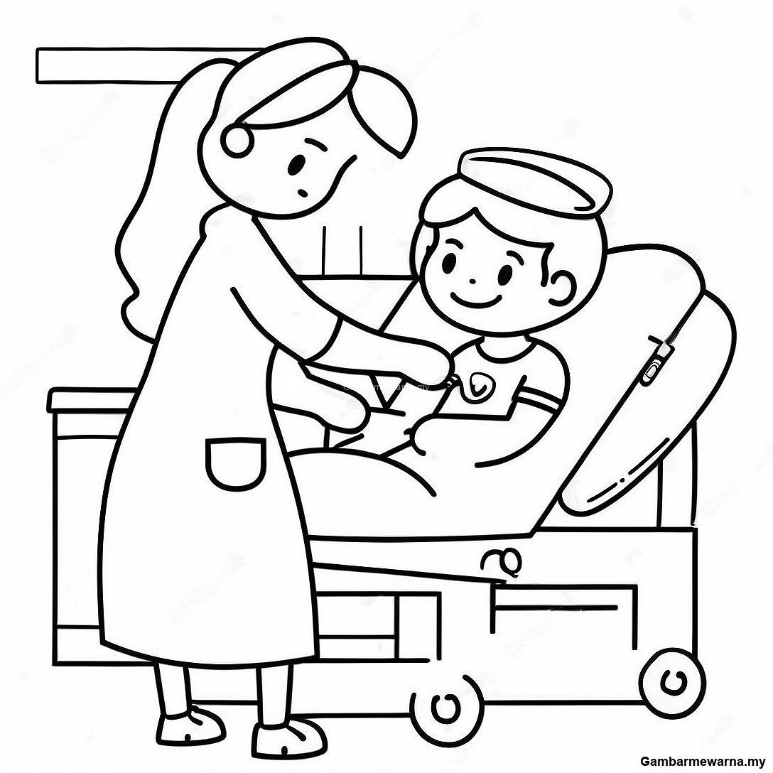 Halaman Mewarna Jururawat Comel Membantu Pesakit