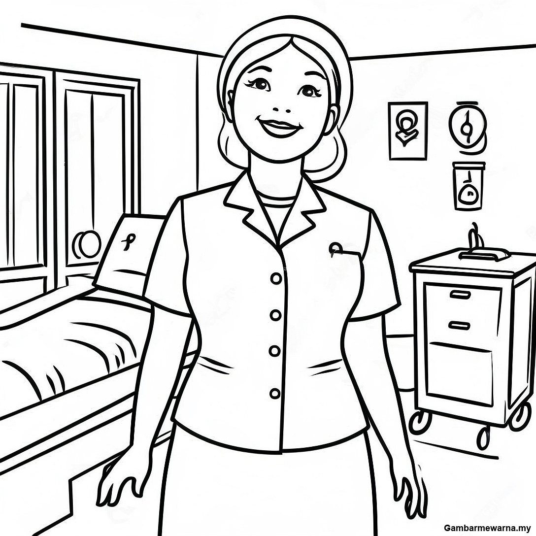 Muat turun PDF Boleh Cetak Halaman Mewarna Jururawat Mesra Di Hospital