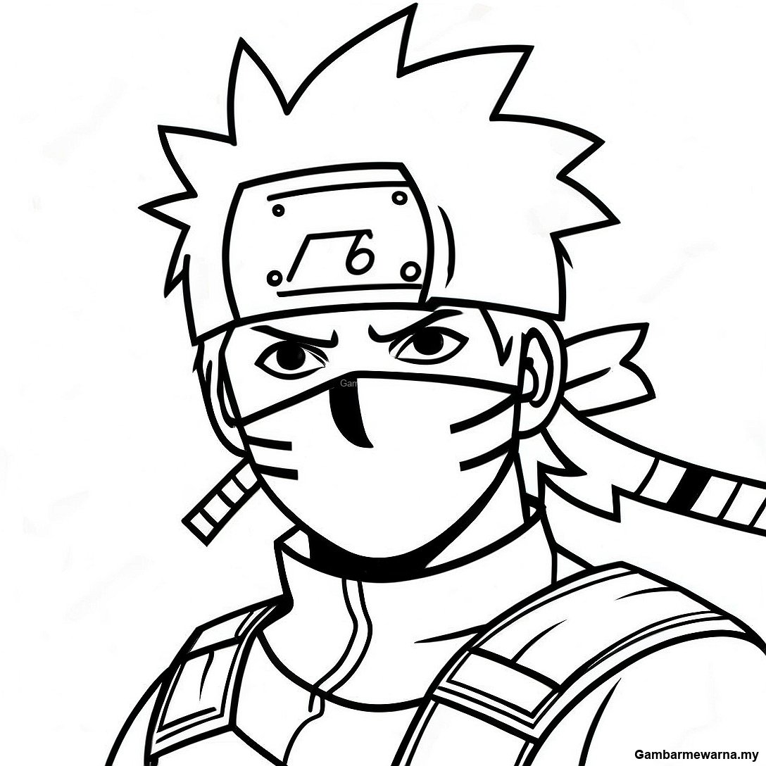 Halaman Mewarna Kakashi Dalam Pakaian Ninja