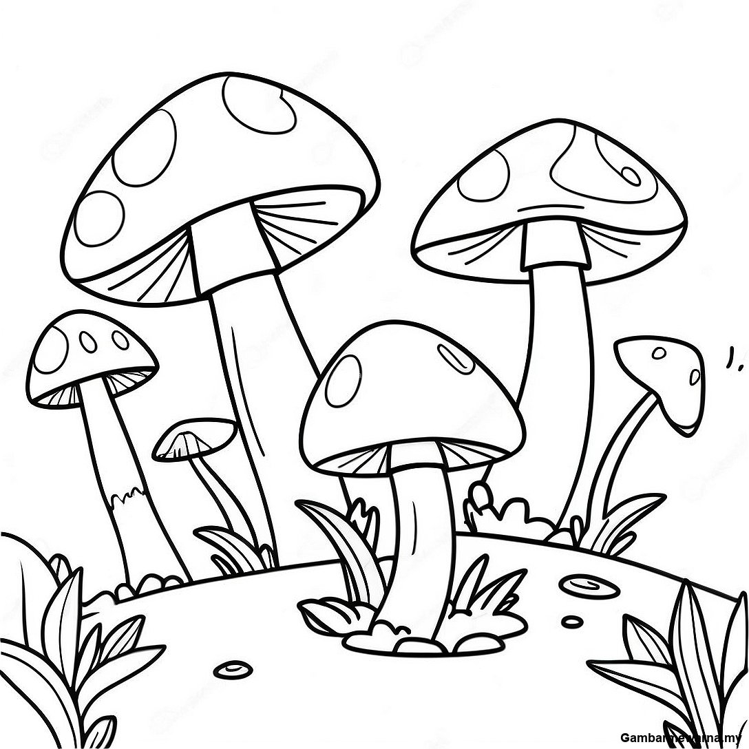 Muat turun PDF Boleh Cetak Halaman Mewarna Kampung Cendawan Fantasi