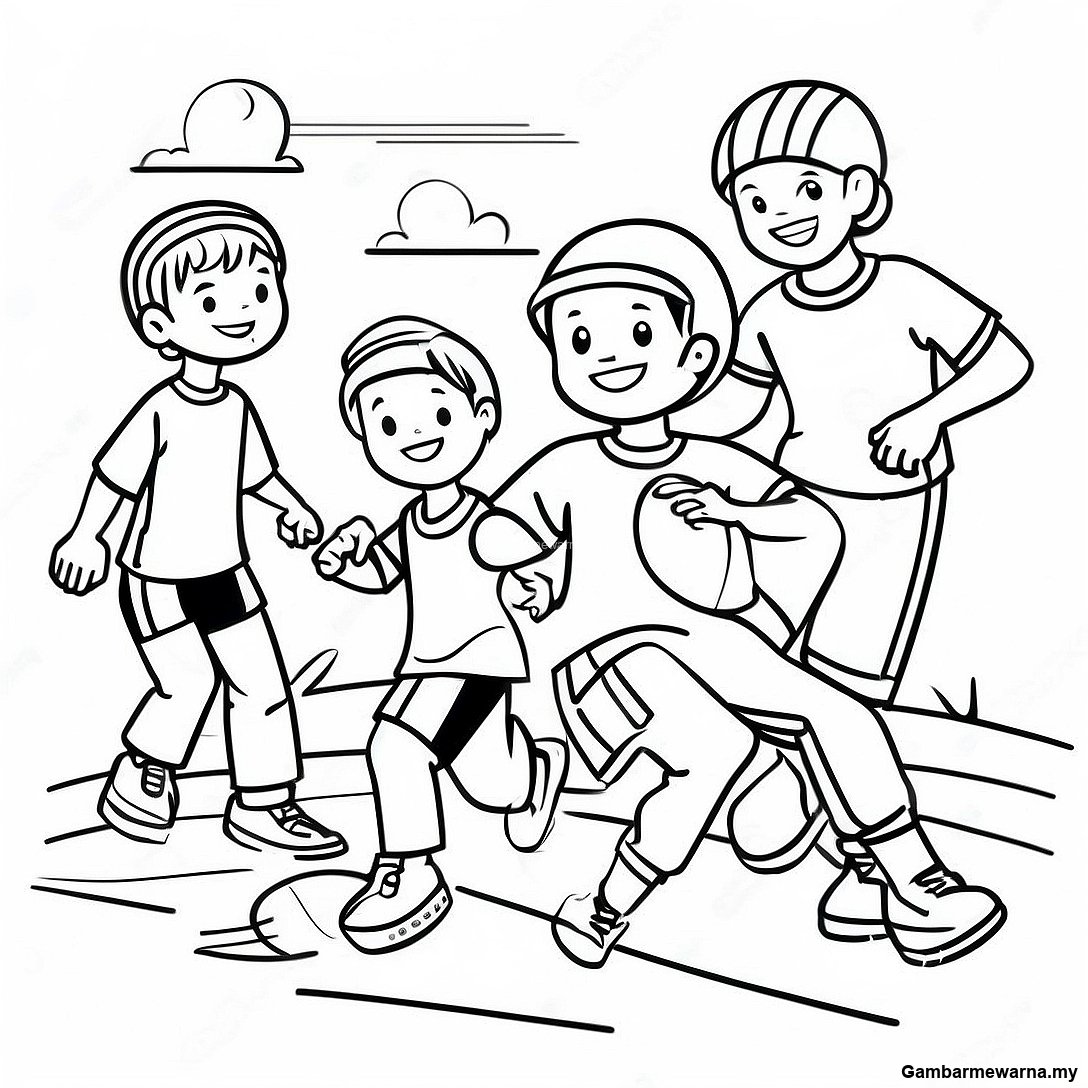 Halaman Mewarna Kanak Kanak Aktif Bermain Sukan