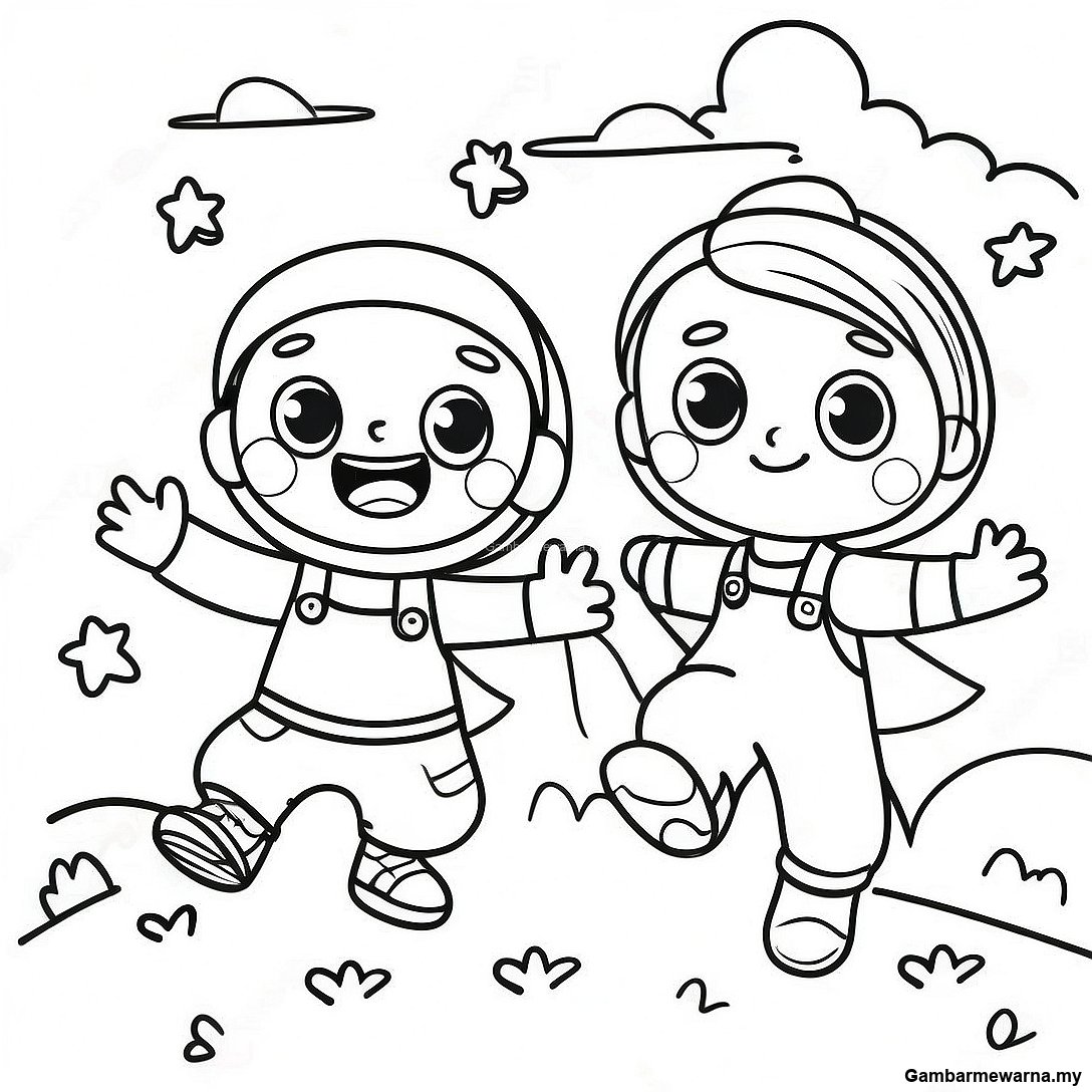 Halaman Mewarna Kanak Kanak Gembira Bermain