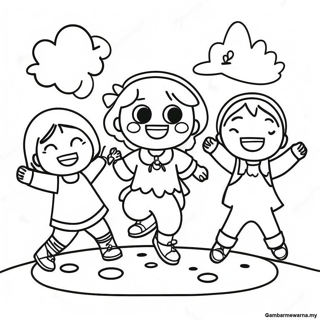 Halaman Mewarna Kanak-Kanak Gembira Bermain