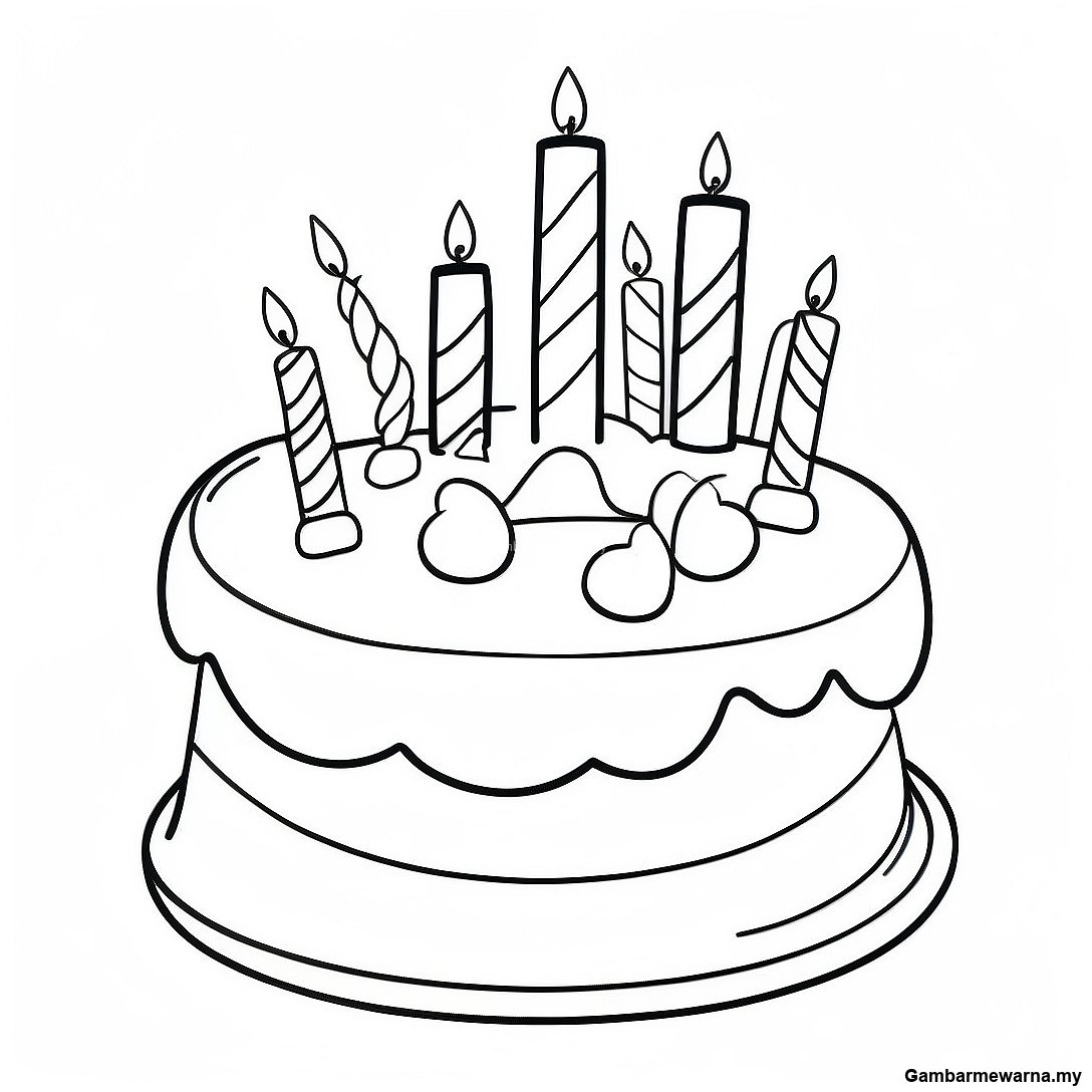 Halaman Mewarna Kek Ulang Tahun Berwarna Warni
