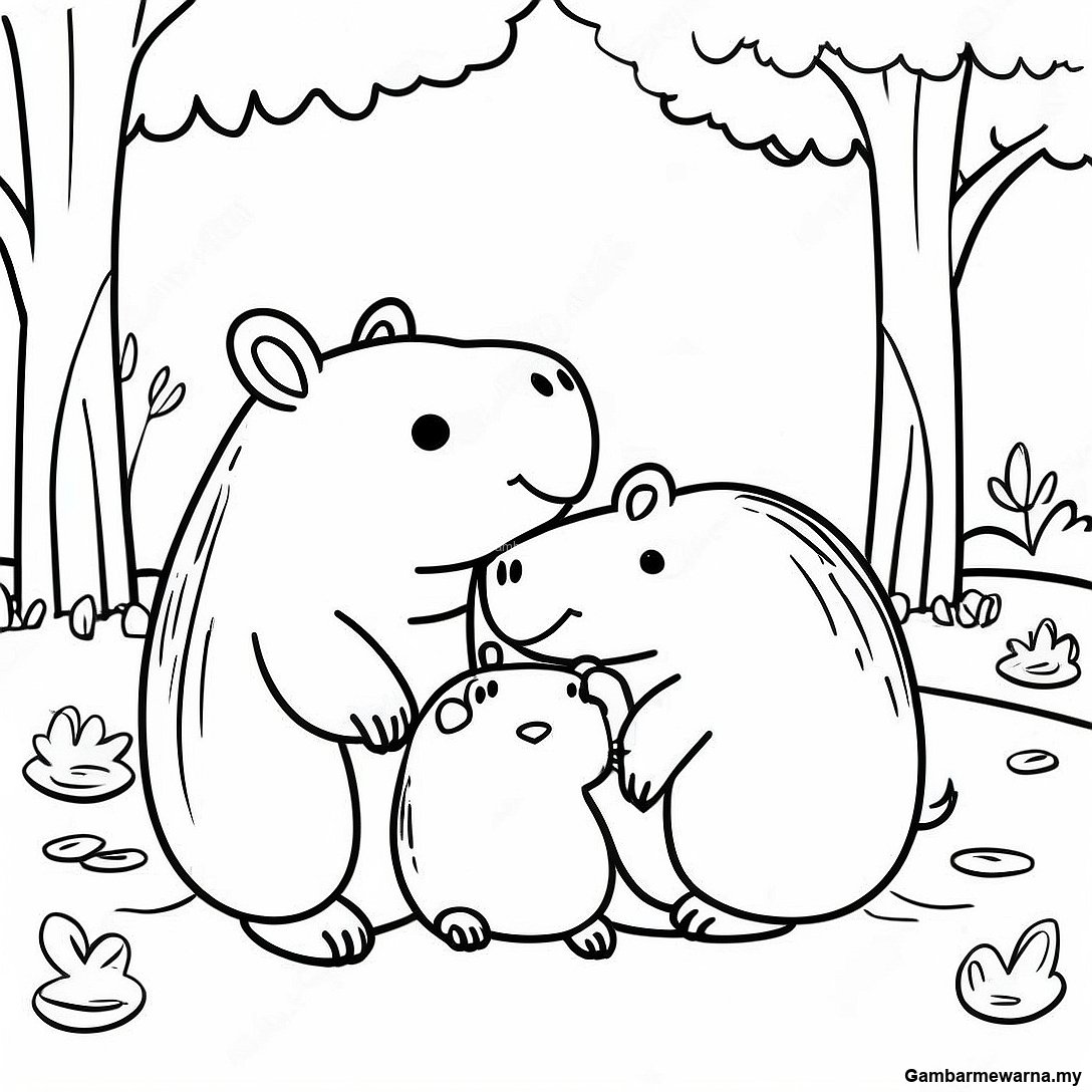 Muat turun PDF Boleh Cetak Halaman Mewarna Keluarga Capybara Di Taman