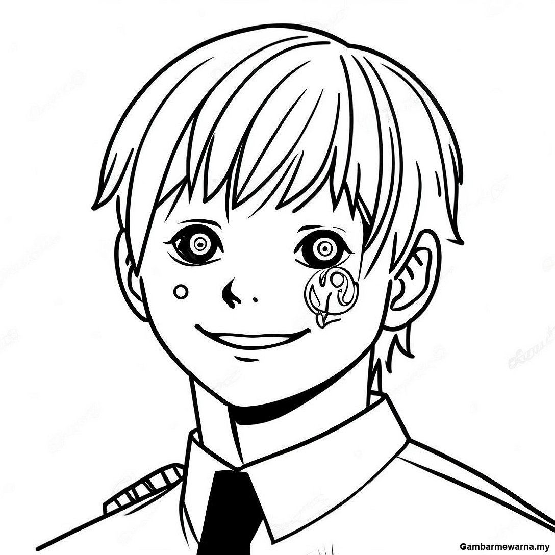 Halaman Mewarna Ken Kaneki Dengan Satu Mata