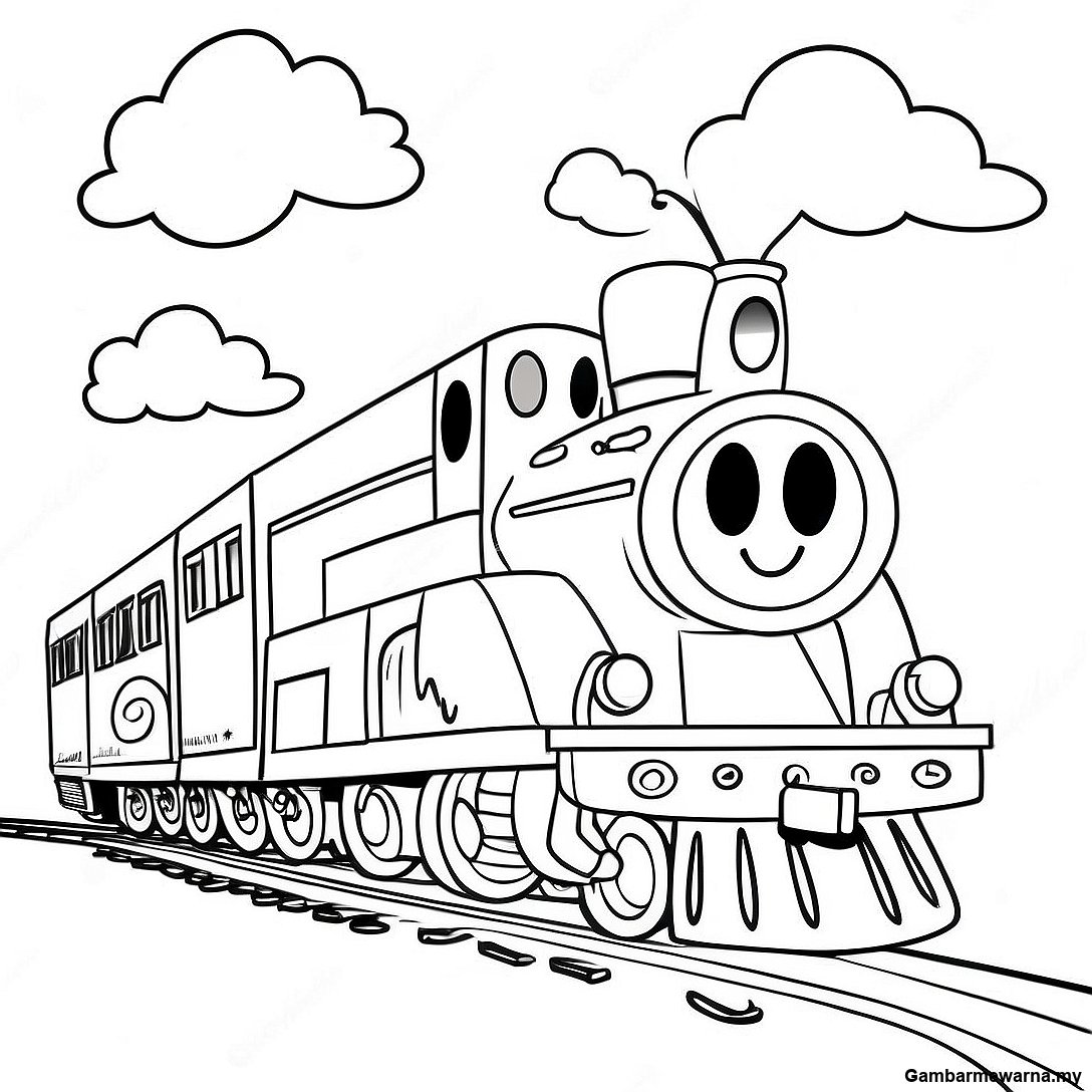 Halaman Mewarna Kereta Api Ceria Dengan Wajah Tersenyum 11064 1713