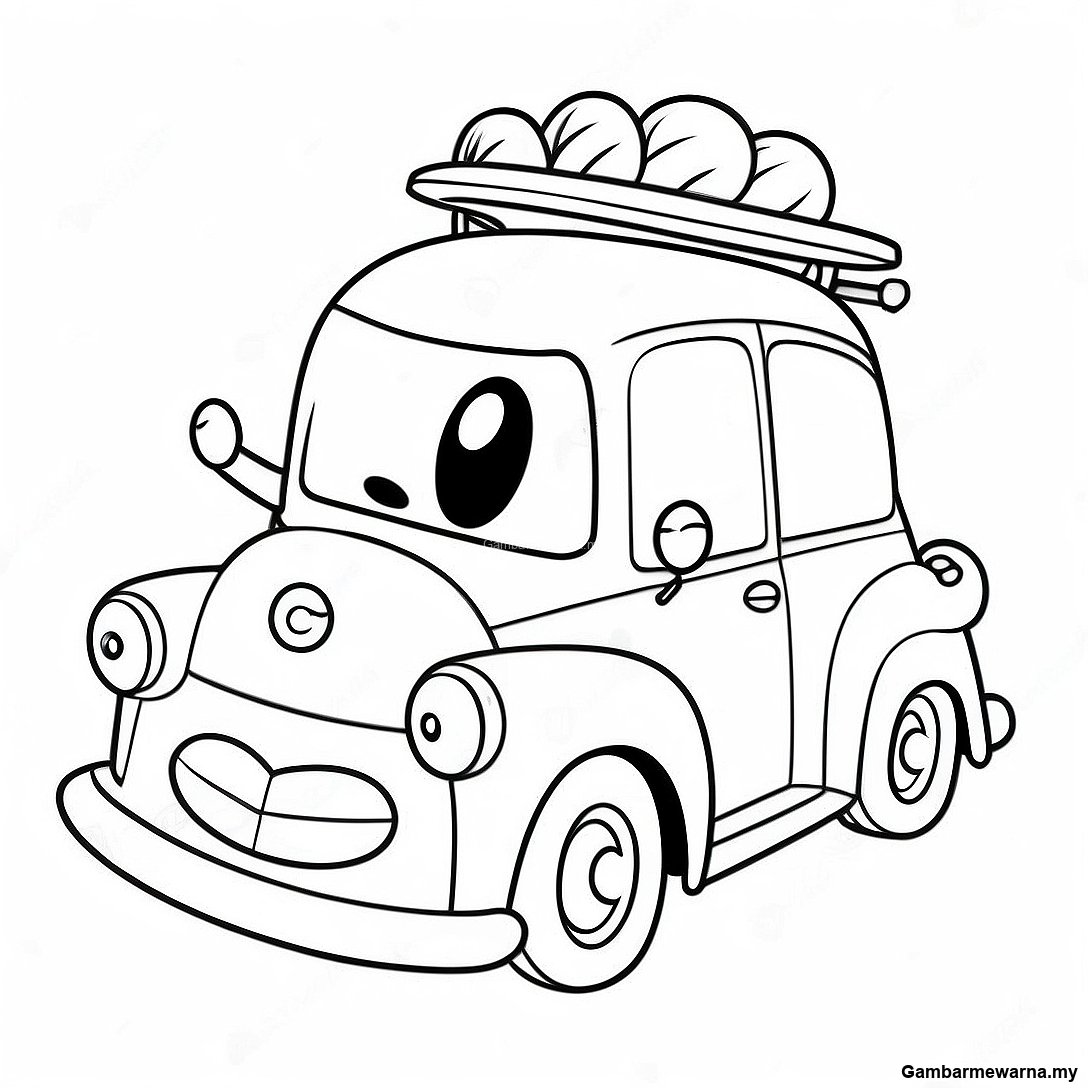 Muat turun PDF Boleh Cetak Halaman Mewarna Kereta Kartun Yang Comel