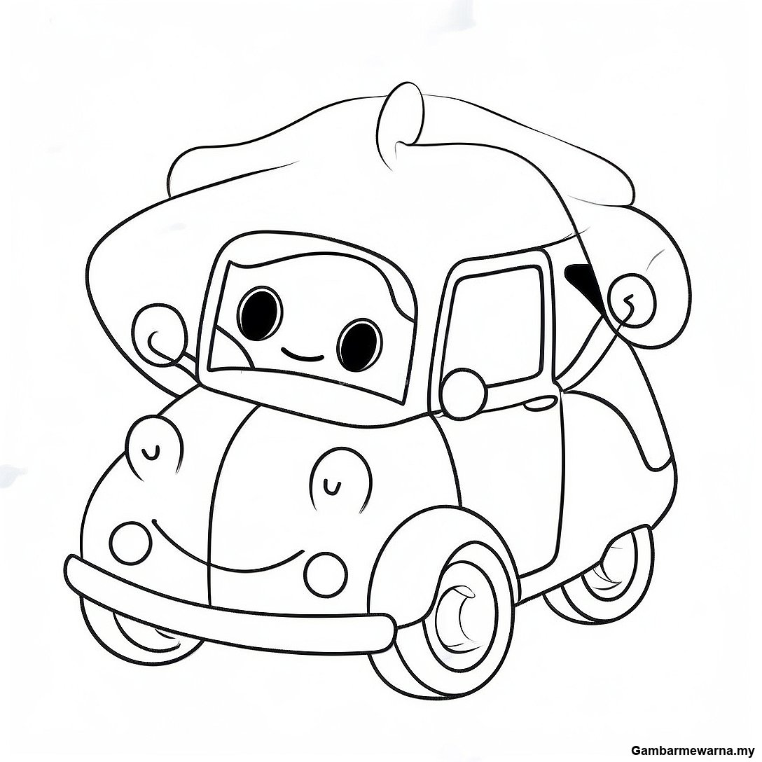 Halaman Mewarna Kereta Kartun Yang Comel