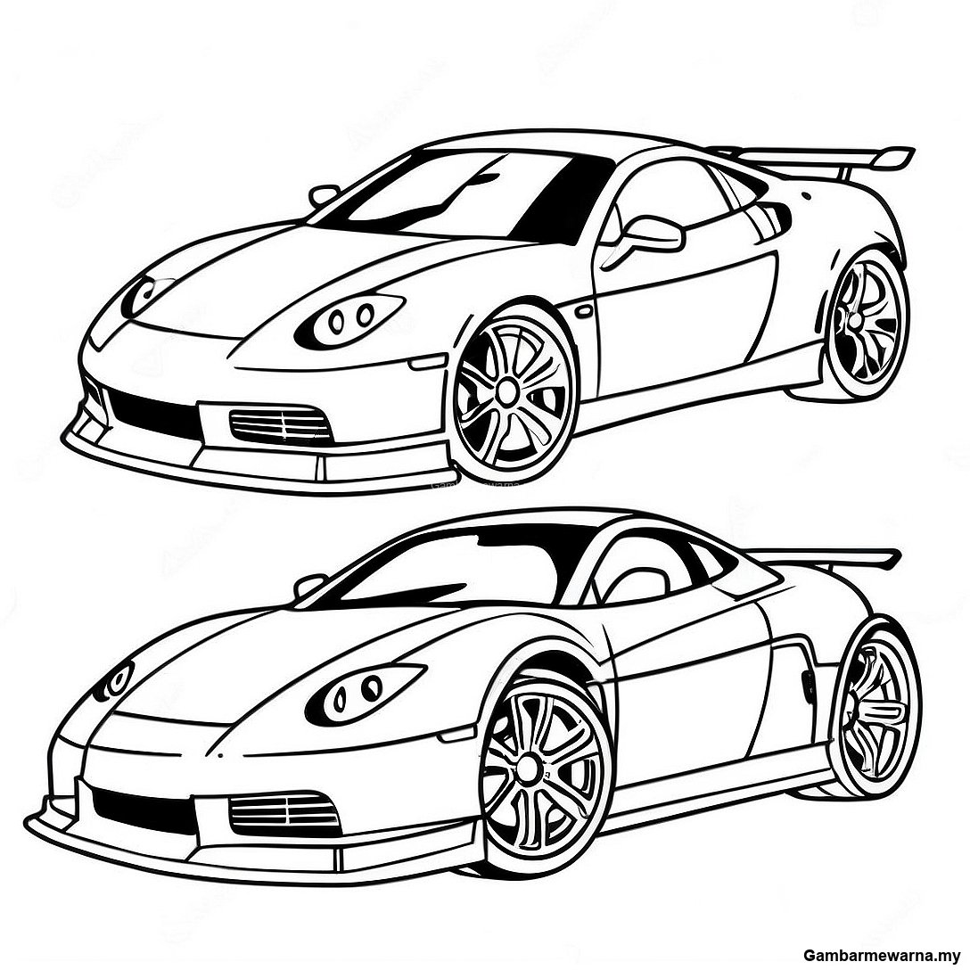 Halaman Mewarna Kereta Lumba Sportif