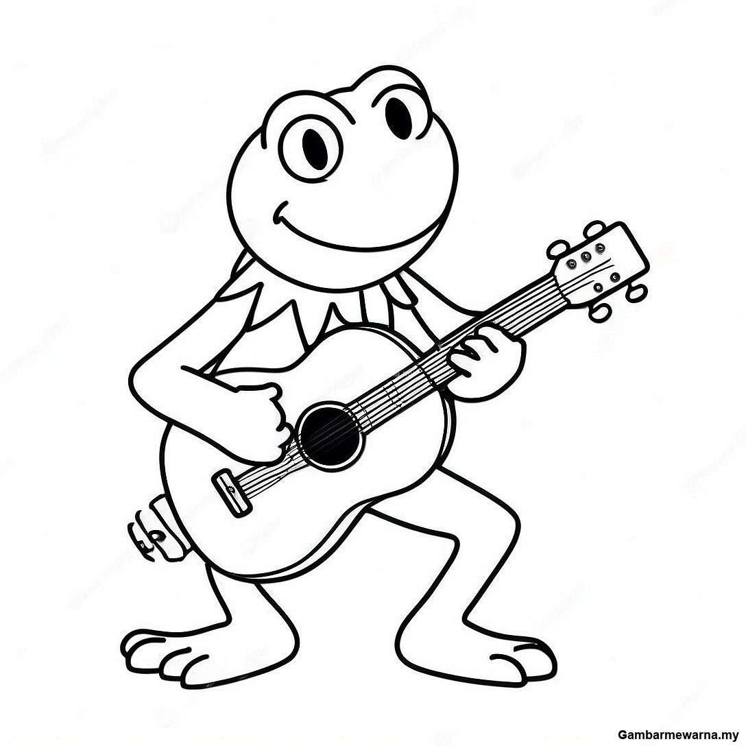 Halaman Mewarna Kermit The Frog Bermain Gitar