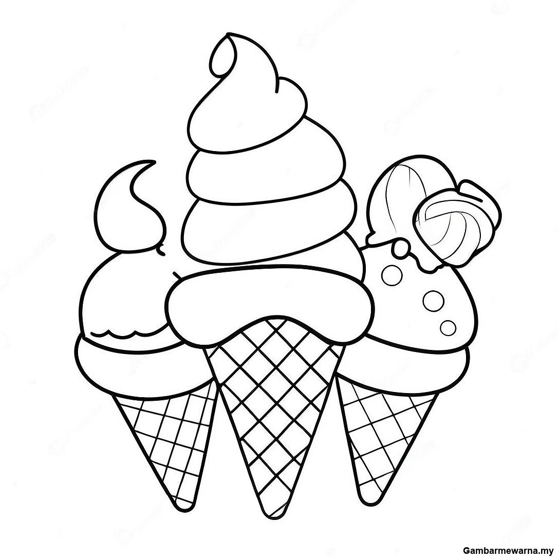 Halaman Mewarna Kon Ais Krim Berwarna Warni